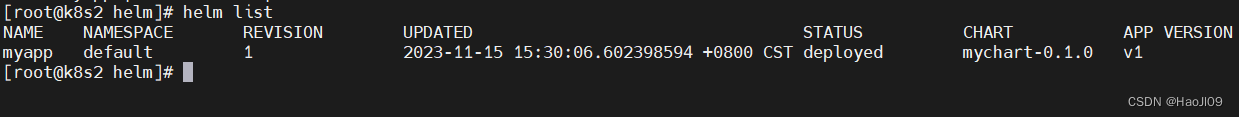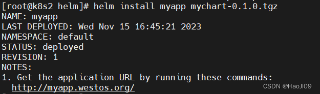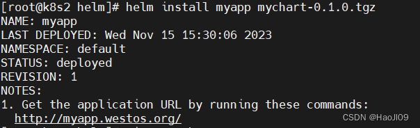 [root@k8s2 helm]# helm install myapp mychart-0.1.0.tgz