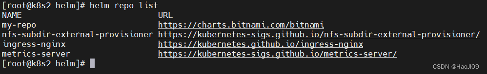[root@k8s2 helm]# helm repo add nfs-subdir-external-provisioner https://kubernetes-sigs.github.io/nfs-subdir-external-provisioner/