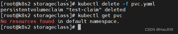 [root@k8s2 storageclass]# kubectl delete -f pvc.yaml