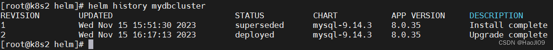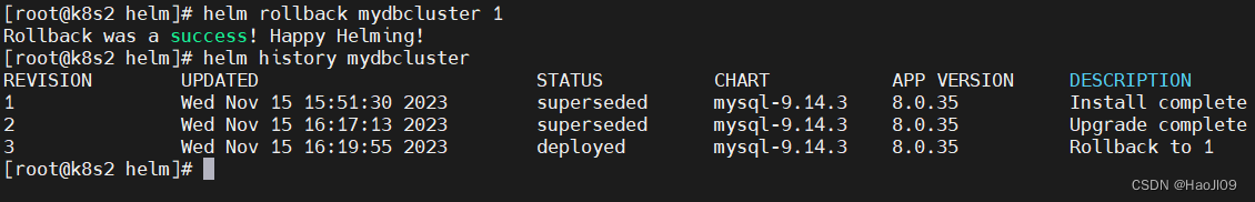 [root@k8s2 helm]# helm rollback mydbcluster 1