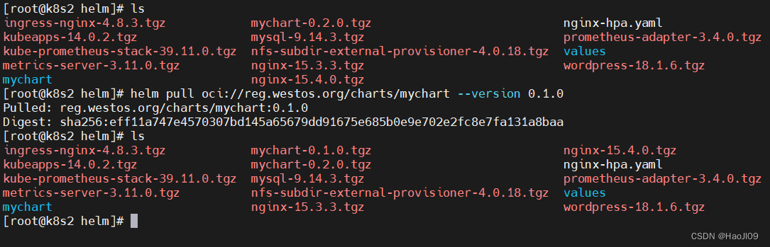 [root@k8s2 helm]# helm pull oci://reg.westos.org/charts/mychart --version 0.1.0