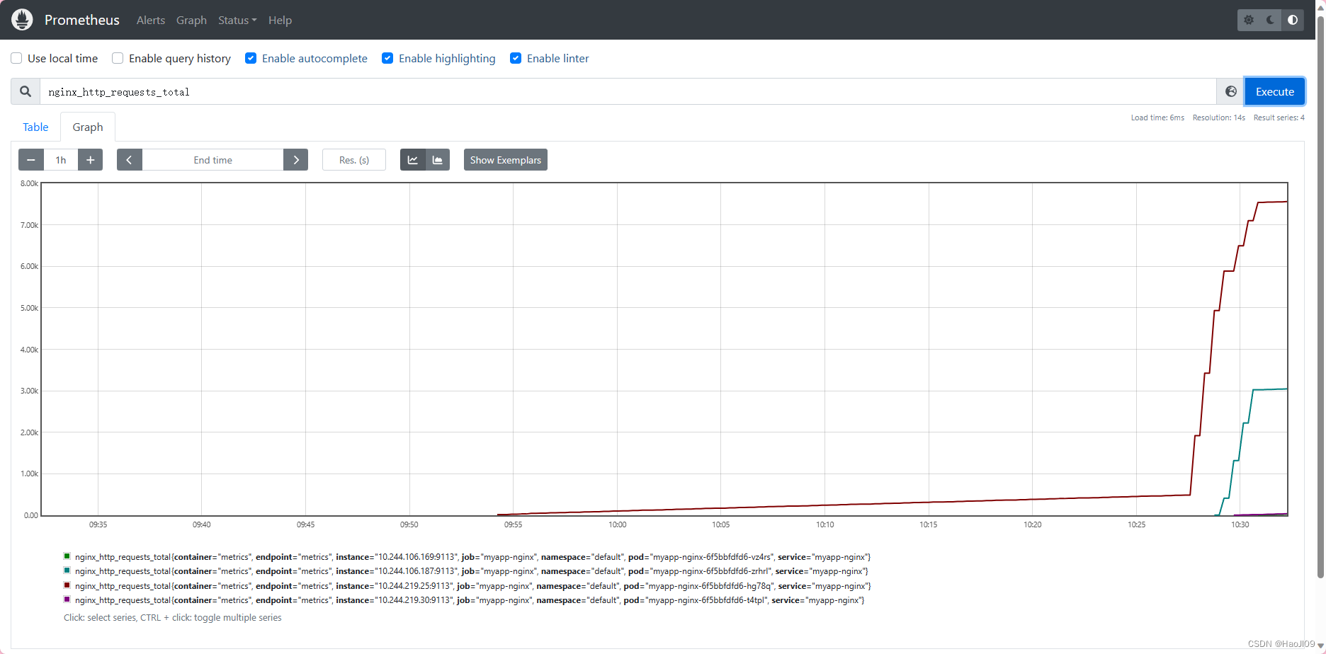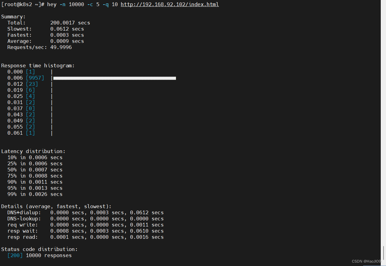 [root@k8s1 ~]# hey -n 10000 -c 5 -q 10 http://myapp.westos.org/index.html
