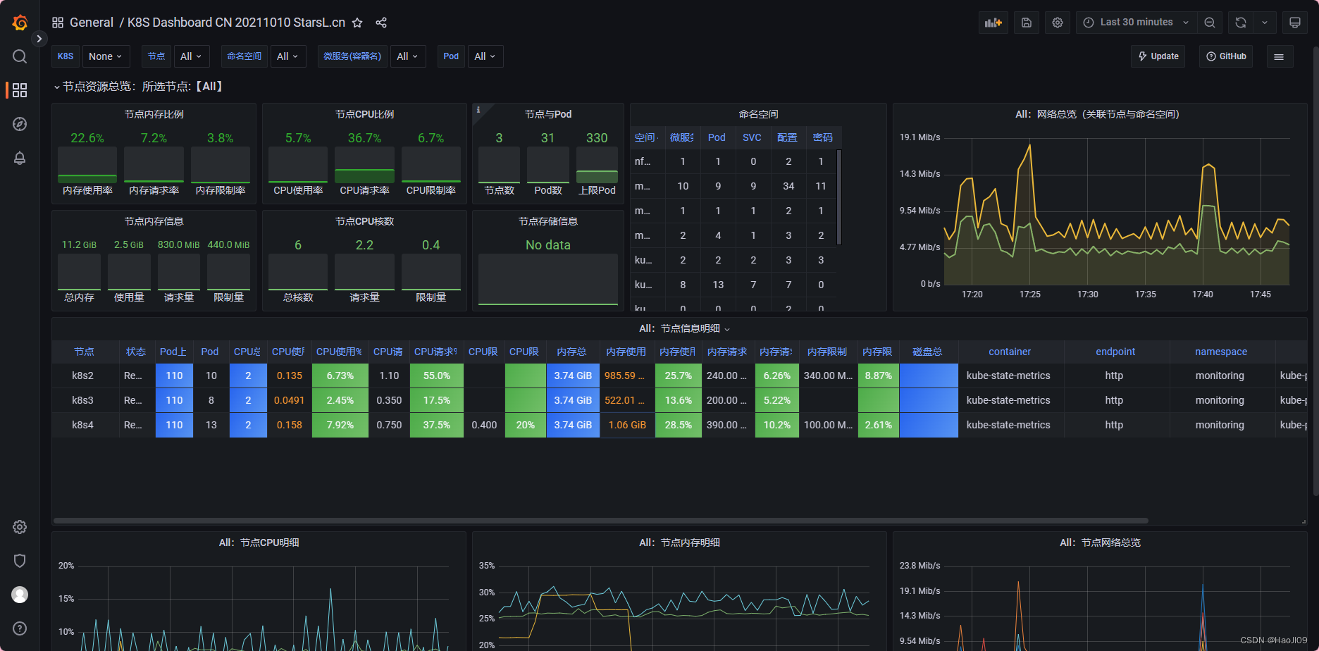 本文详细描述了在Kubernetes环境中部署Prometheus、Grafana监控系统,以及如何配置nginx服务,并使用Helm进行安装和管理,包括创建命名空间、配置文件编写、镜像上传、状态查看和性能测试等内容。