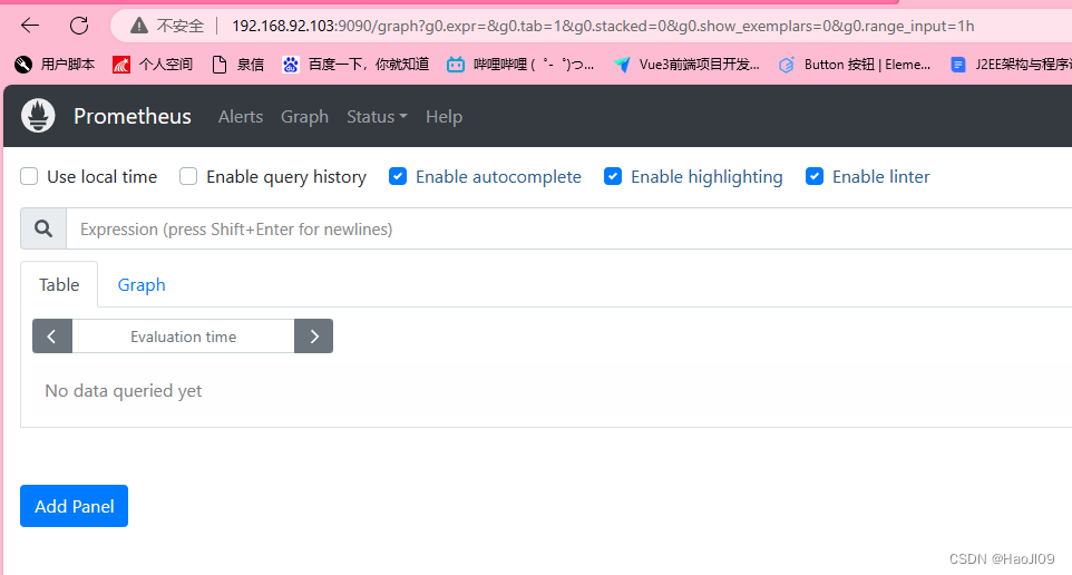 访问prometheus监控页面 http://192.168.92.103:9090/