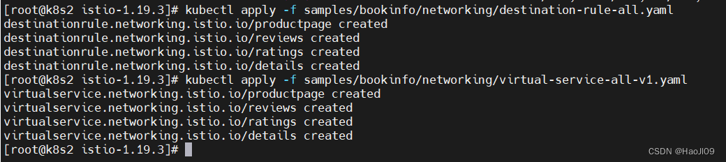 [root@k8s2 istio-1.19.3]# kubectl apply -f samples/bookinfo/networking/virtual-service-all-v1.yaml