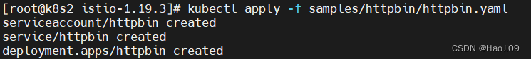 [root@k8s2 istio-1.19.3]# kubectl apply -f samples/httpbin/httpbin.yaml