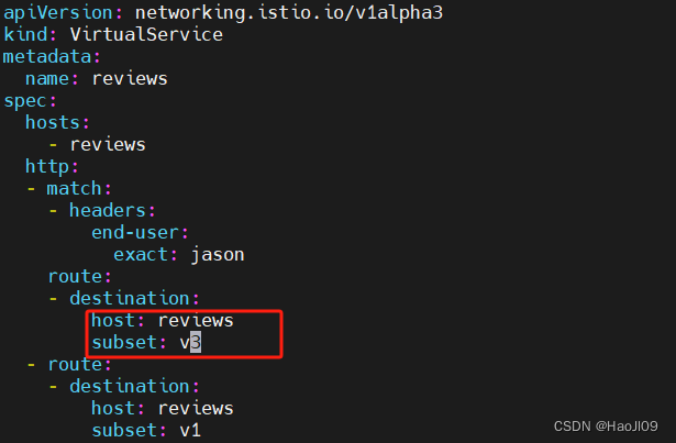 [root@k8s2 istio-1.19.3]# vim samples/bookinfo/networking/virtual-service-reviews-test-v2.yaml