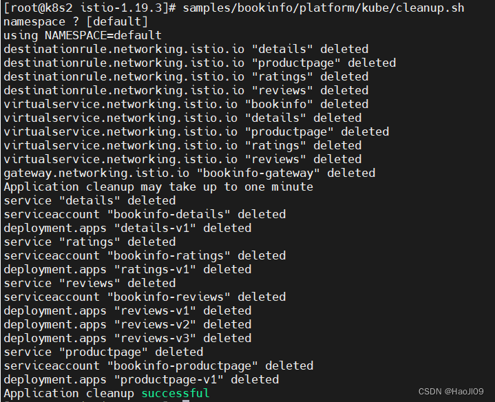 [root@k8s2 istio-1.19.3]# samples/bookinfo/platform/kube/cleanup.sh