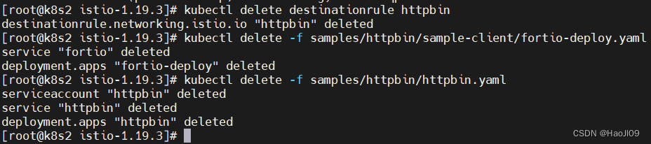 [root@k8s2 istio-1.19.3]# kubectl delete -f samples/httpbin/httpbin.yaml