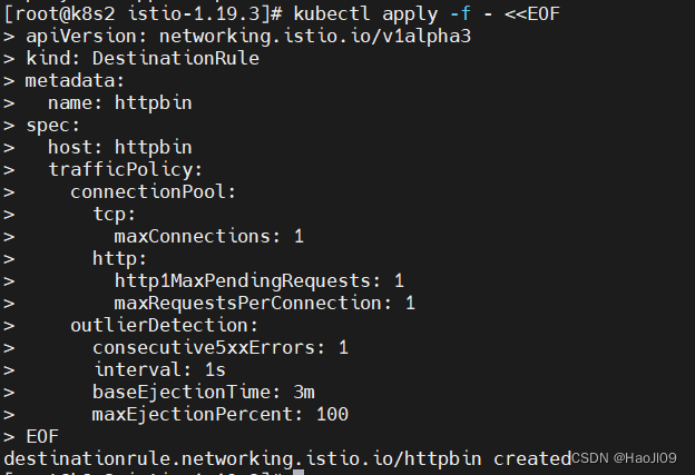 [root@k8s2 istio-1.19.3]# kubectl apply -f - <<EOF