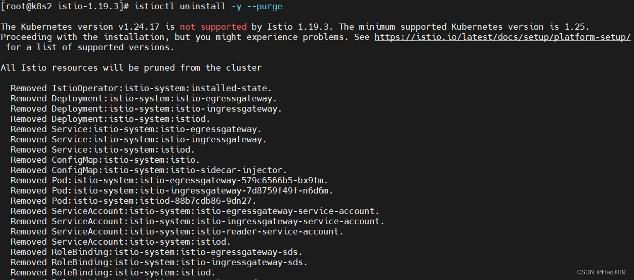 [root@k8s2 istio-1.19.3]# istioctl uninstall -y --purge