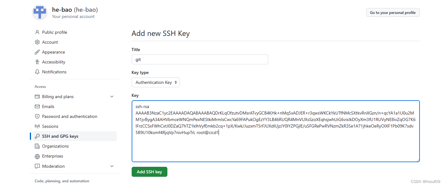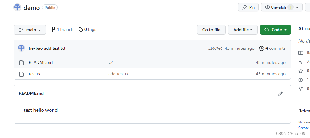 [root@cicd1 demo]# git remote add origin git@github.com:he-bao/demo.git