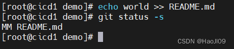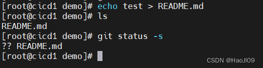 [root@cicd1 demo]# git config --global user.name "hjl"