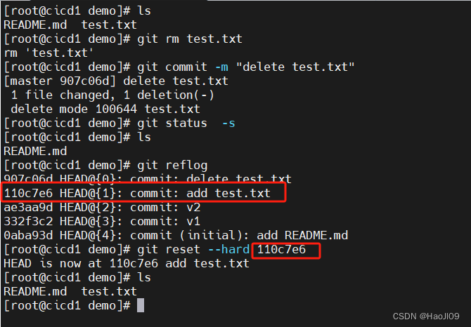[root@cicd1 demo]# git reset --hard 110c7e6