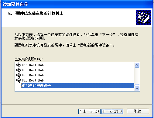 选择“添加新的硬件设备”,点击下一步,如图四: