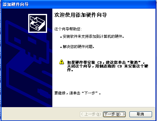 开始》控制面板》添加硬件,双击,打开如下图1: