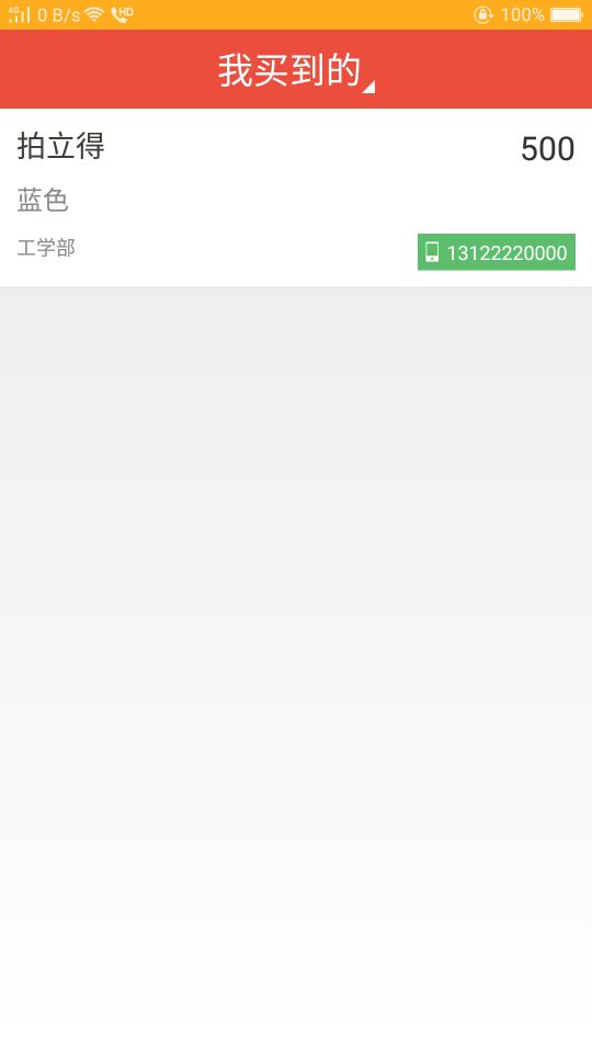 用户提交订单后,该界面会增加订单项。每个订单项包括的信息有:商品标题、商品价格、商品描述以及卖家联系方式。