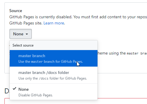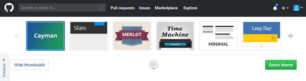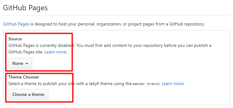 往下滑动页面,找到 GitHub Pages 设置,选择预览分支和模板