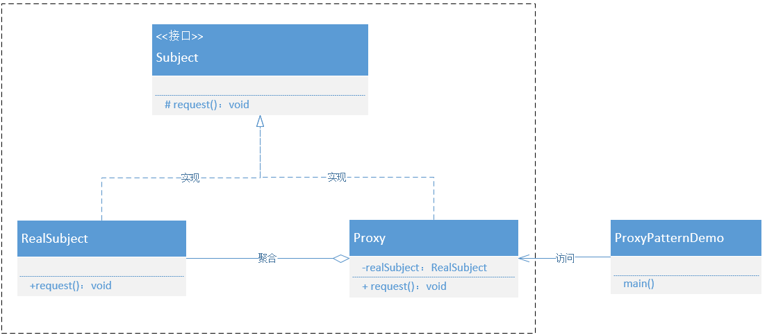 - Proxy在公共方法中,实际使用realSubject来执行方法。