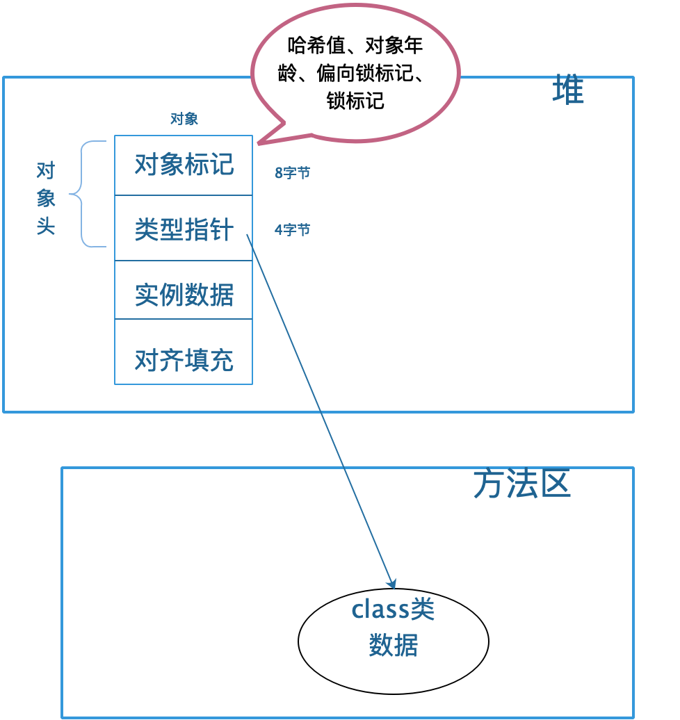 明显就是在对象头中指向方法区中class元数据的指针,通过此指针,我们可以通过对象来获取到对象的class信息。毕竟class是在方法区中,而对象是在堆中,如果没有指针关联是不科学的,而且由于一个class可以有多个对象实例,所以肯定是由对象指向class