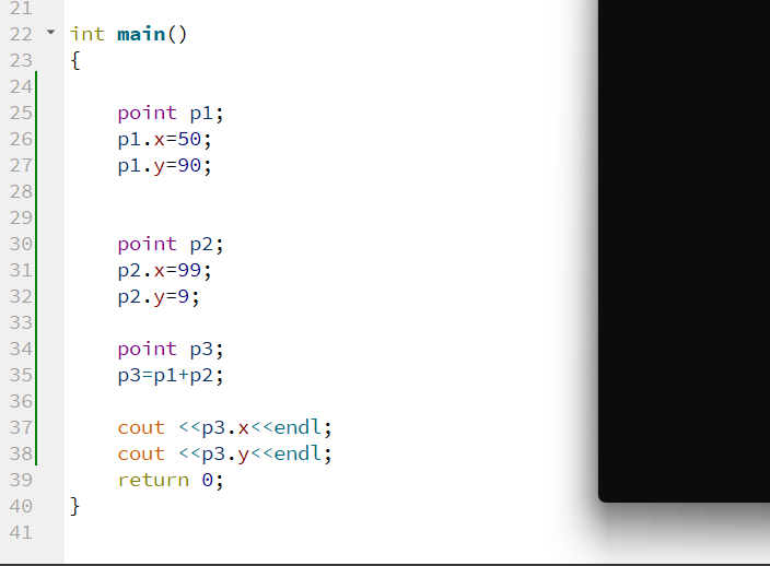在这边我们写实现体的时候,我们需要写一个ret对象去承接x和y的新值,目的就是我们要将值给P3这个对象 ,所以返回值类型都是类,