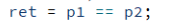这边我们定义出来了两个对象,现在我们想要比较p1和p2这两个对象,我们想要的结果是如果相同返回1,但是如果我们自己不去自定义重载运算符的话就,无法实现,甚至是报错,因为预设的==的操作