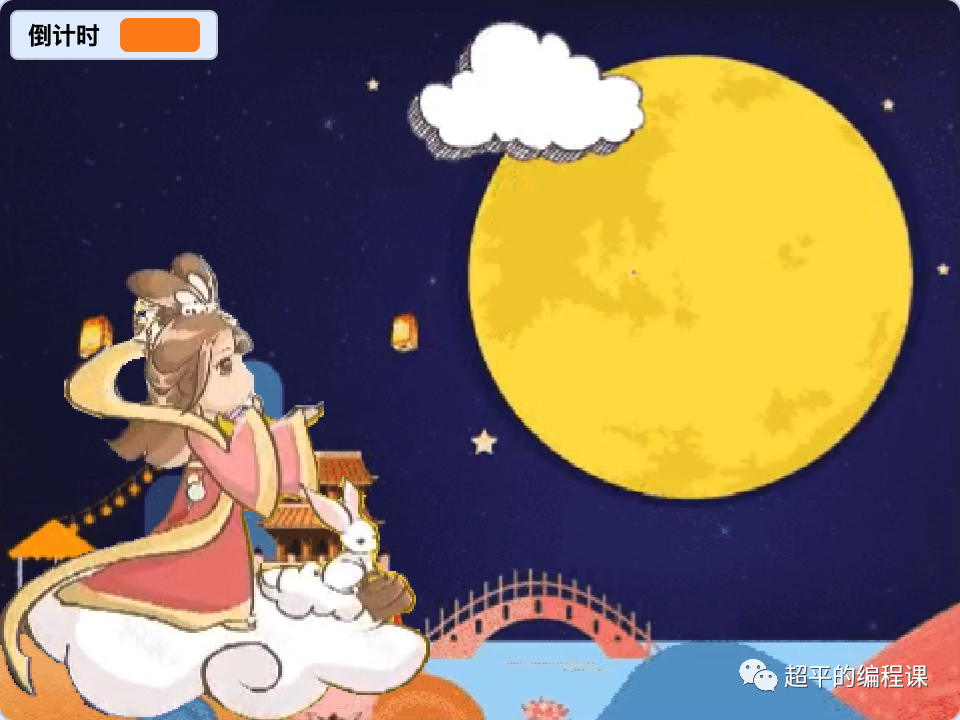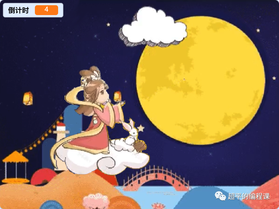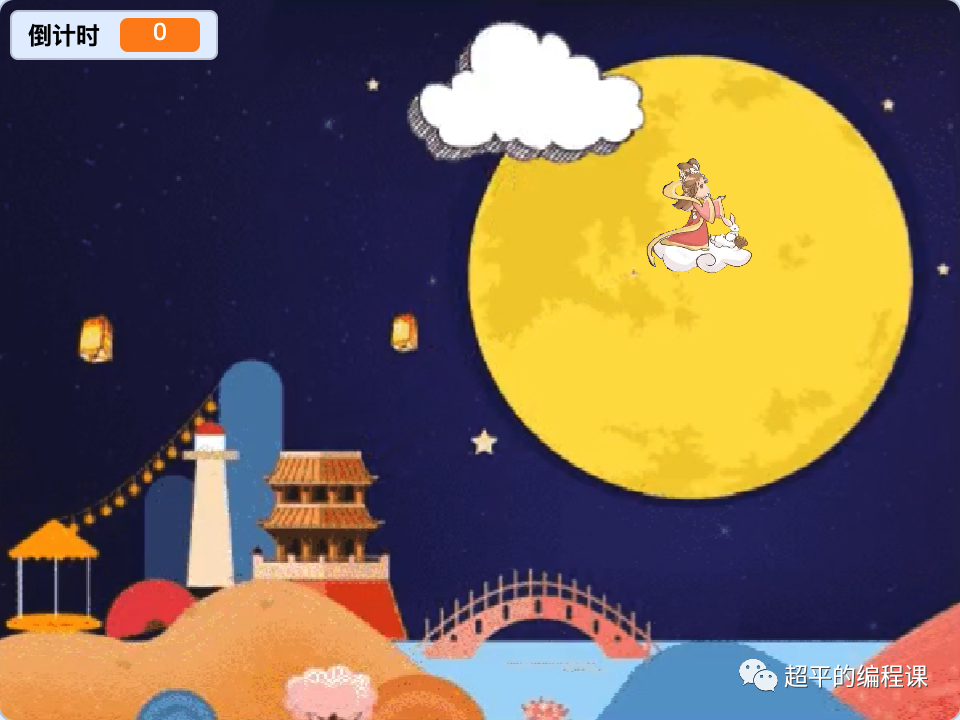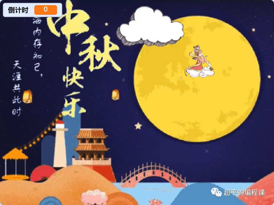 5). 倒计时为0停止计数,嫦娥在月亮上停止移动;