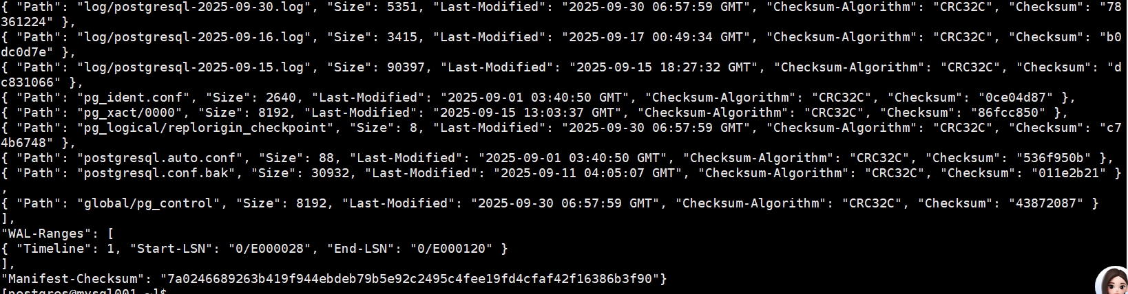 -rw------- 1 postgres postgres 183491 Sep 30 14:57 backup_manifest