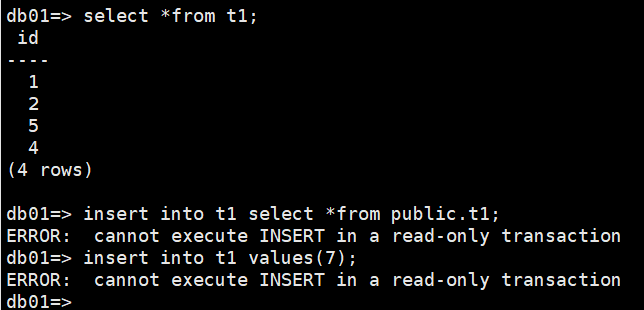 会出现不能写的情况,是由于 指定在达到恢复目标时服务器应该立刻采取的动作 的参数recovery_target_action 默认动作是pause,这表示恢复将会被暂停。