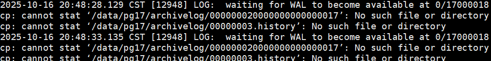 restore_command = 'cp /data/pg17/archivelog/%f %p'