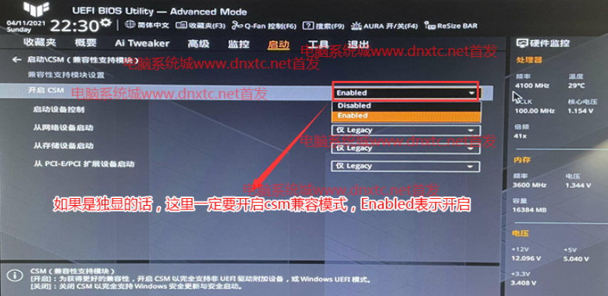开启CSM兼容模式:通常采用UEFI+GPT方式安装,但需要开启CSM兼容模式。如果不开启CSM兼容模式情况下会出现卡LOGO。