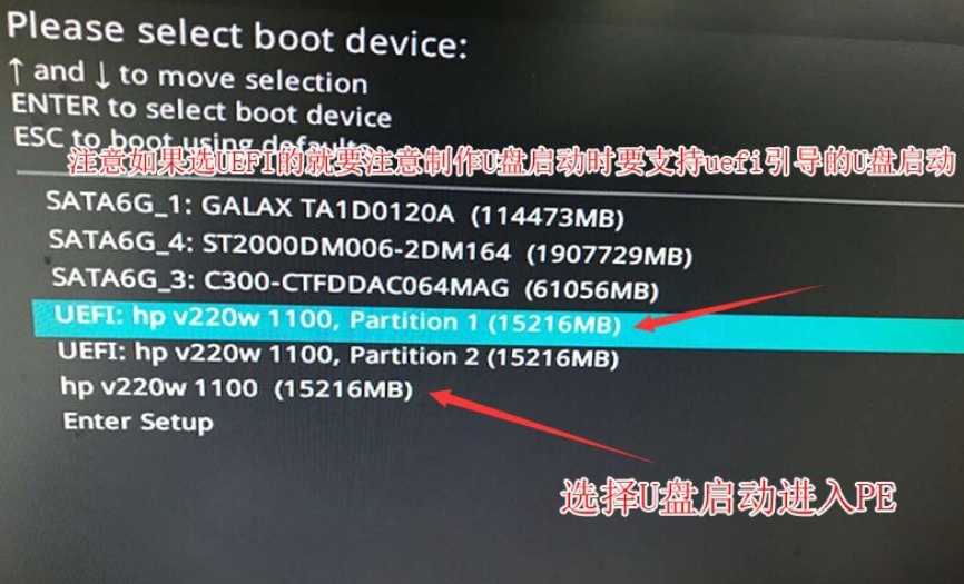 5,插入U盘启动盘,重启按ESC选择识别到U盘启动项,回车进入pe,如下图所示;
