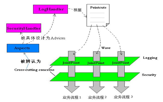 - u 将Cross-cutting concern设计为通用,不介入特定业务对象的一个职责清楚的Aspect对象,这就是Aspect-oriented programming,缩写即AOP.