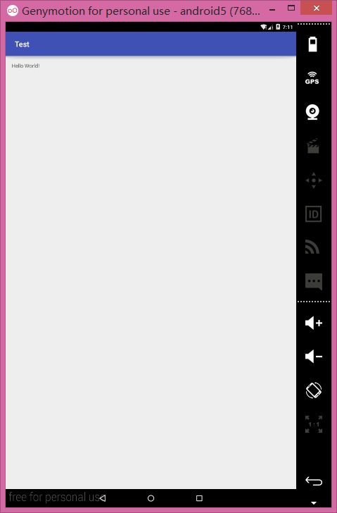然后我们运行这个test项目(默认的,没写任何代码)。经过一番等待(启动挺慢的)终于启动了模拟器并成功运行了这个测试项目。
