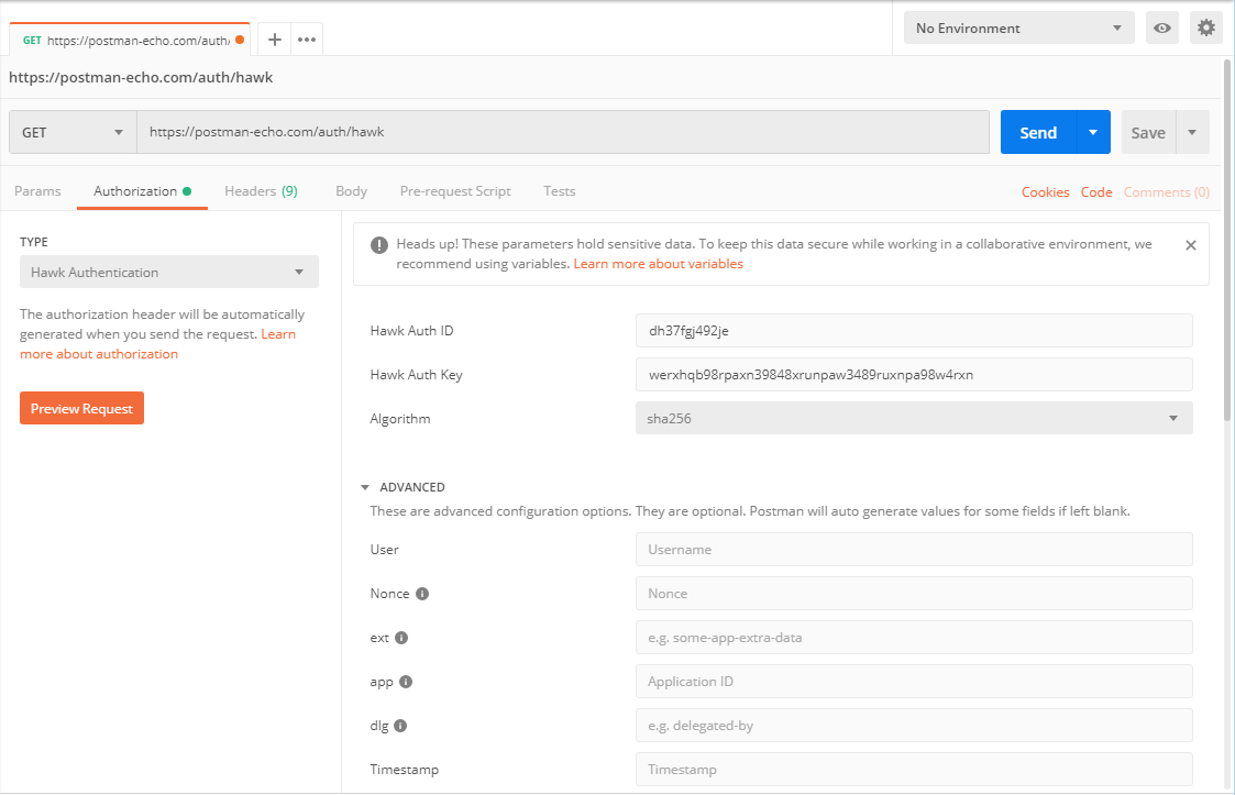 很多时候,出于安全考虑我们的接口并不希望公开。这是就需要使用授权(Authorization)机制,授权过程验证您是否具有访问服务器所需数据的权限。当您发送请求是,您通常必须包含参数,以确保请求具有访问和返回所需数据的权限。Postman提供授权类型,可以轻松的在Postman本地程序中处理生发验证协议。