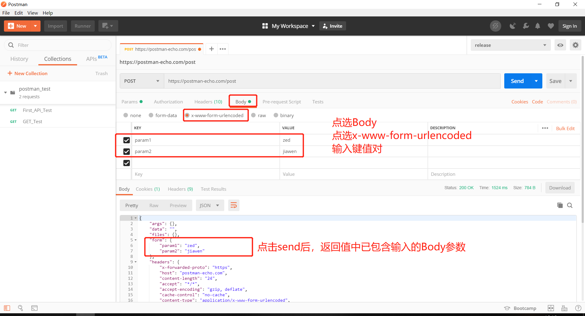 - 例如:https://postman-echo.com/get?name=leesin&skill=qq2wrd