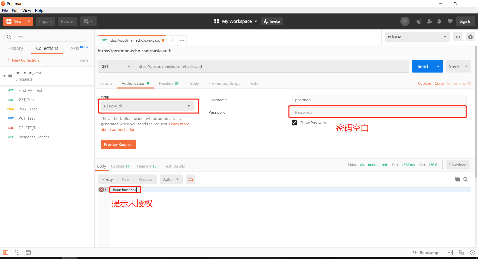 基本身份验证是一种比较简单的授权类型,需要经过验证的用户名和密码才能访问数据资源。这就需要我们输入用户名和应对 的密码。