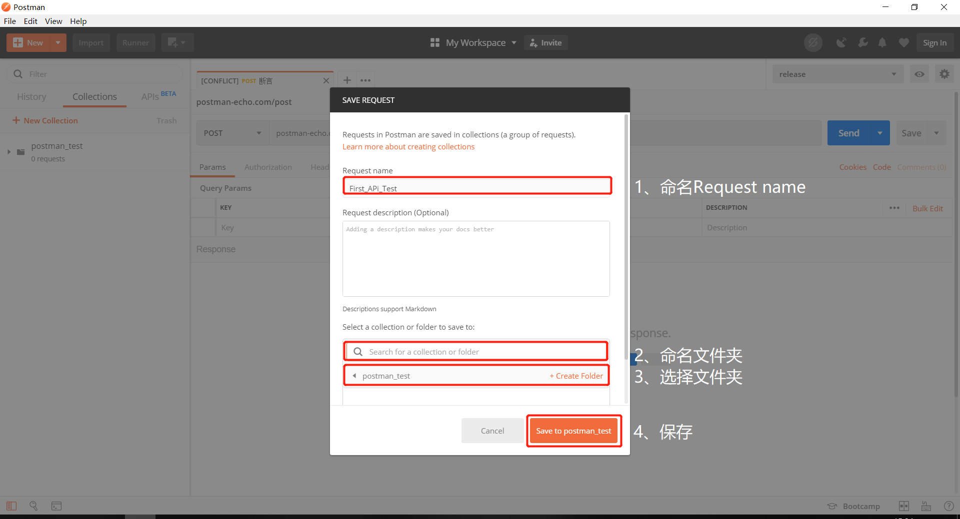 首先将postman的集合导出到桌面新建文件夹pmtest,如下图所示: