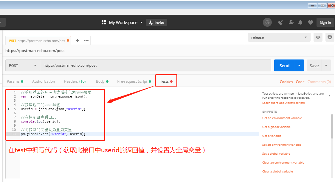 - test Script(测试脚本)当接收到响应之后,在执行测试脚本。