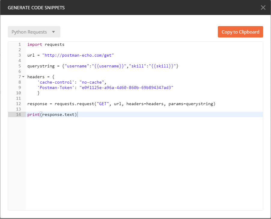 生成的代码片段可以点击Copy to Clipboard 复制。