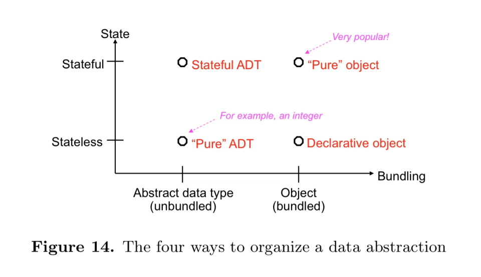 数据抽象可以按照两个主要维度进行组织:是否使用具名状态,是否将操作绑定到具有数据的单个实体中。