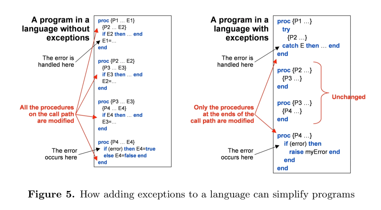 最常见的是,需要全局修改(而非局部修改)才能实现单个目标。(说句题外话,针对这种问题我又忍不住想给人安利 AOP(面向切面编程)了!)比如,若我们想要函数可以在任意时刻检测错误,并把控制权转给修正错误的代码,我们就需要有“异常”概念,否则将要影响所有代码。