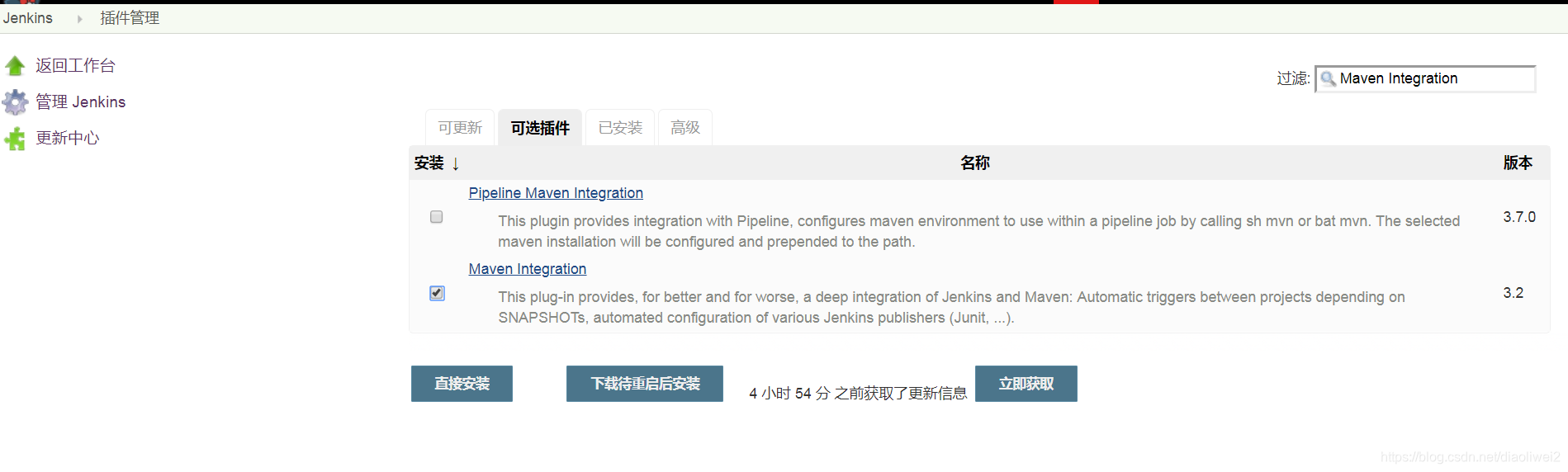 15、插件安装(如果在安装Jenkins的时候没有安装相关插件,可以按照如下方式安装,已经安装,则不需要)