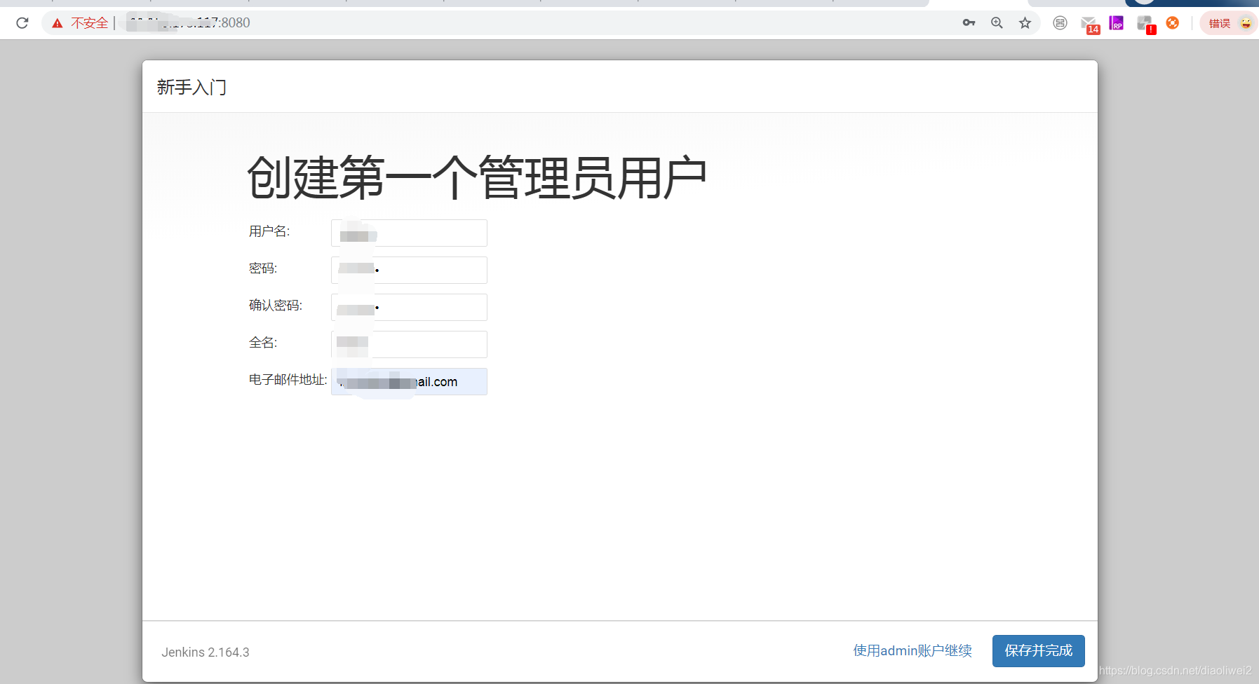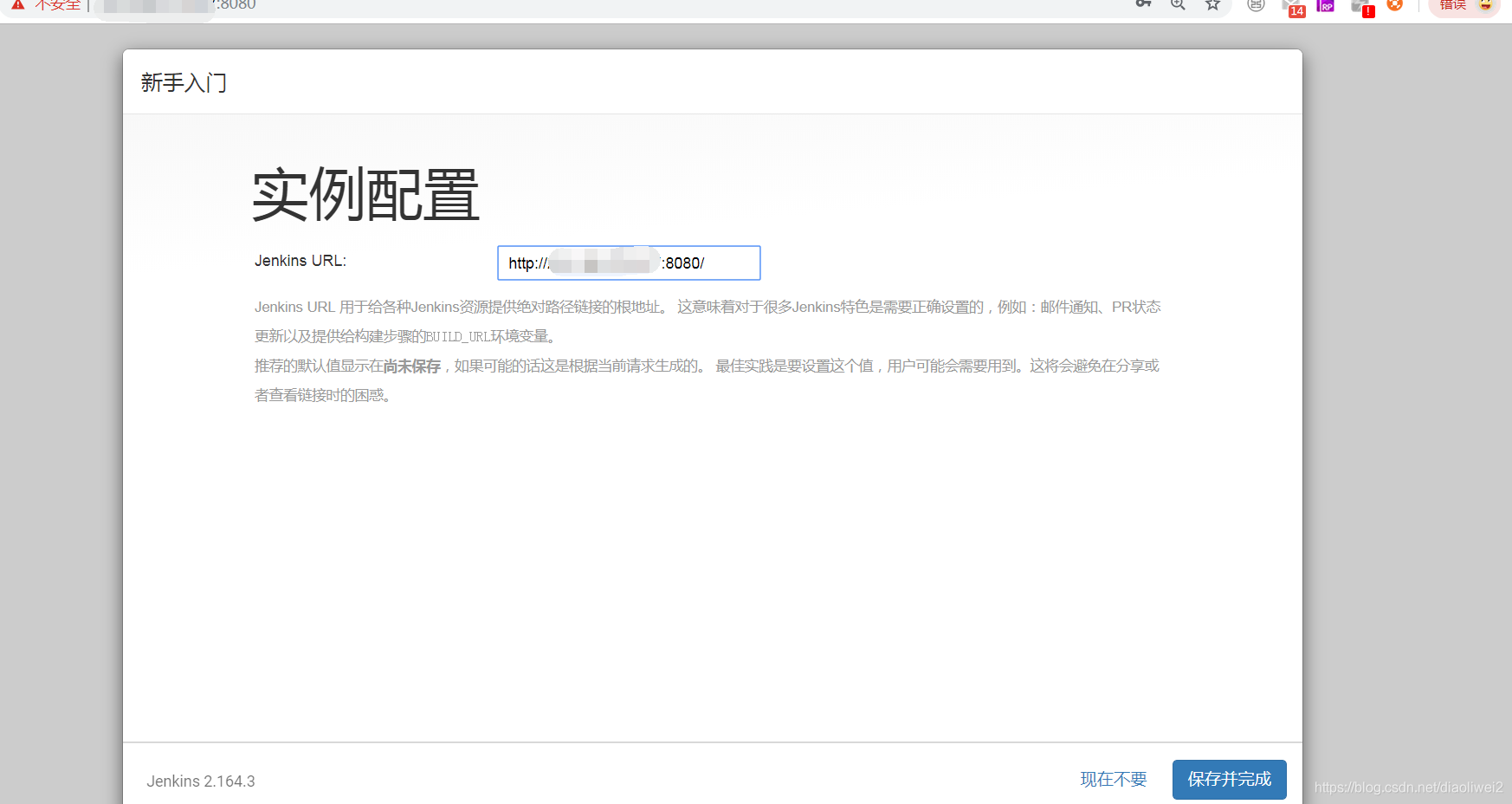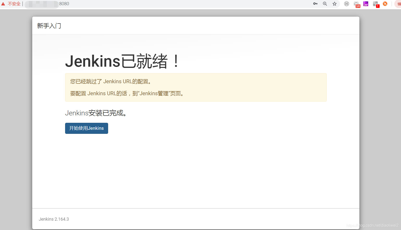 9、访问jenkins, 浏览器输入: http://21*.***.***.***:8080
