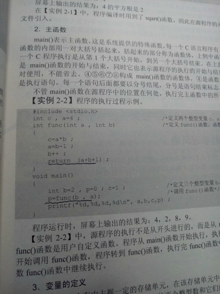 这么讲吧,return是个英文单词,中文意思是“返回”,用在程序里也是返回的意思,返回啥呢?返回一个值。在func函数中,return将a+b+1这个表达式计算的值拿到,并且返回给main函数中的p,就是这样。
