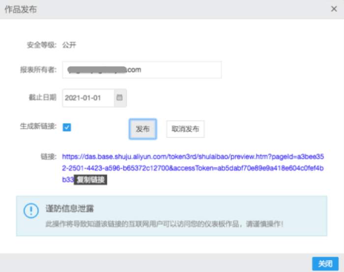 点击预览,查看仪表板的效果,确认没问题后,可以选择public发布,实现免登。