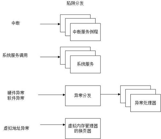 中断和异常是导致处理器转向正常控制流之外代码的两种系统条件。陷阱(trap)是指当异常或者中断发生时,处理器捕捉到一个执行线程,并将控制权转移到操作系统中某处固定地址处的机制。