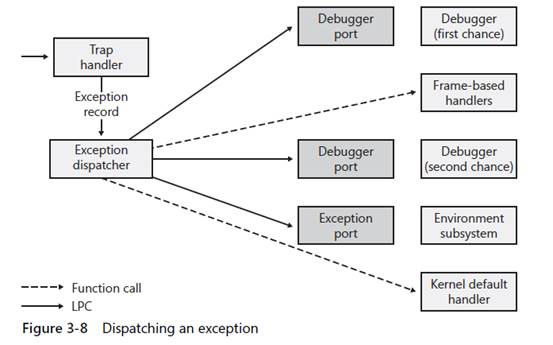 调试器端口是最常见的异常来源,因此异常分发器采取动作,