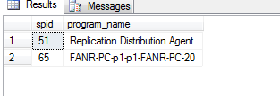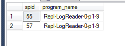在sql server中查询sys.sysprocesses 这2个spid 会发现program_name='Repl-LogReader-0-p1-9