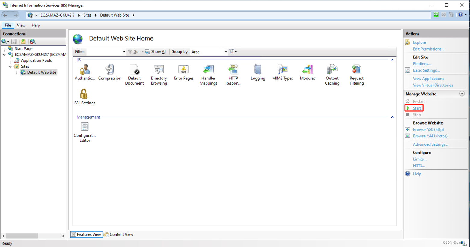 6.点击Start启动IIS